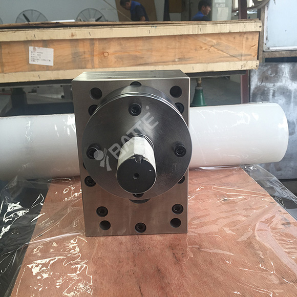 b、一般按原套泵板組裝,分組裝配紡絲計量泵的主體。先裝上齒輪試轉,再裝上蓋板,如是高壓泵還須壓入定位套,然后再試轉主軸,確認靈活性,如無阻滯現象,用力矩扳子擰緊螺釘。